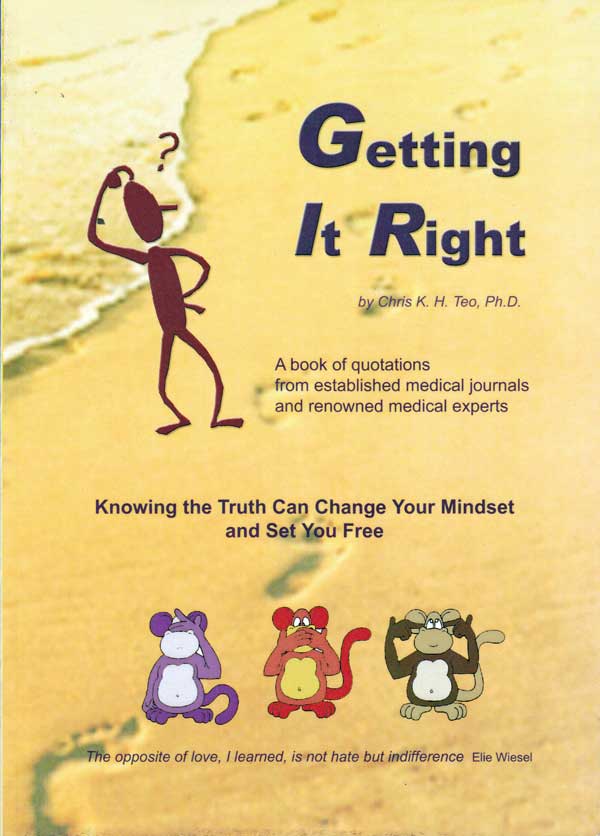 This book is about truth. It provides facts as I know them – documented in established medical journals and books by medical experts themselves. In writing this book, I would like to be as fair and objective as possible. I have read, researched and observed cancer patients for a decade now. I need not have to offer my own opinions at all. I have read widely and what I need to say or see happening, have all been written by medical experts themselves. Hence, this is a book of quotations based on my reading of medical journals and books. Take for example the advice by John Lee et al. found in their book that is available from the local bookstore: What Your Doctor May Not Tell You About Breast Cancer. The authors wrote:
